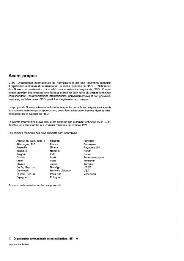 La Norme internationale ISO 4920 a été élaborée par le comité technique ISO/TC 38,