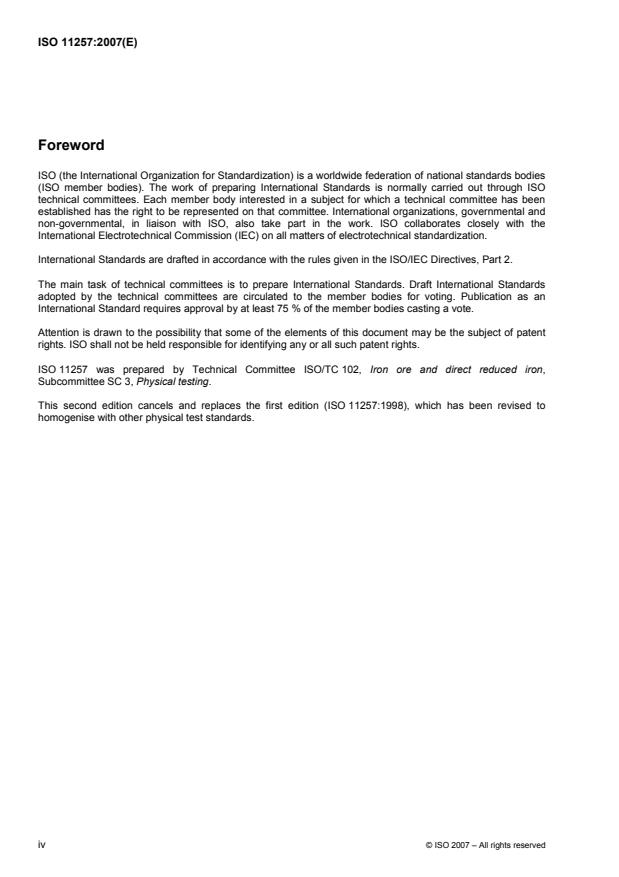 ISO 11257 was prepared by Technical Committee ISO/TC 102, Iron ore and direct reduced iron,