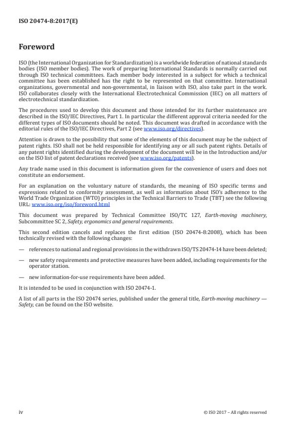 ISO 20474-8:2017 is part of the broader ISO 20474 series, which covers safety requirements for various earth-moving machinery types. Key related standards include: