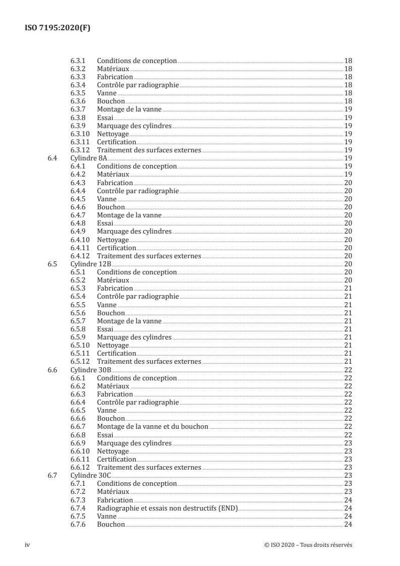 — les exigences relatives aux cylindres et aux capots de vanne en service.