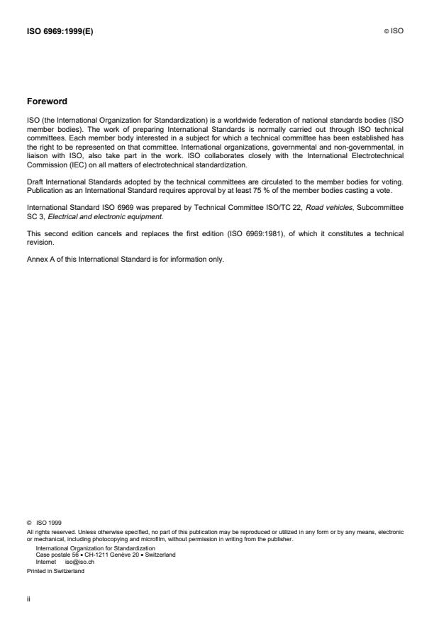 International Standard ISO 6969 was prepared by Technical Committee ISO/TC 22, Road vehicles, Subcommittee