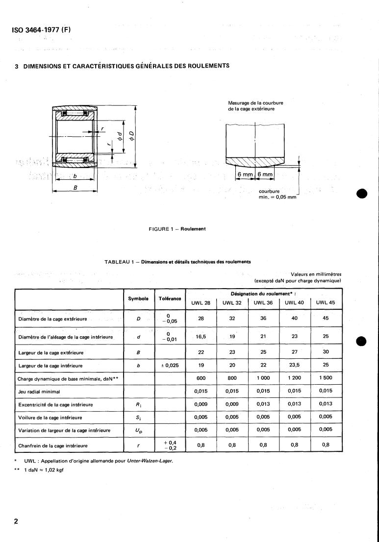 TABLEAU 1 - Dimensions et détails techniques des roulements