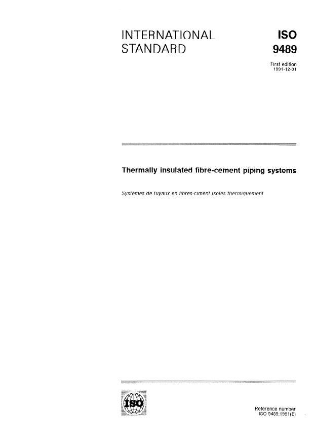 ISO 9489:1991 is a standard published by the International Organization for Standardization (ISO). Its full title is "Thermally insulated fibre-cement piping systems". This standard covers: Describes the general composition, characteristics and requirements, test methods, marking, and conformity with standards. Gives terms and definitions. Annexes A and B form an integral part of this standard.