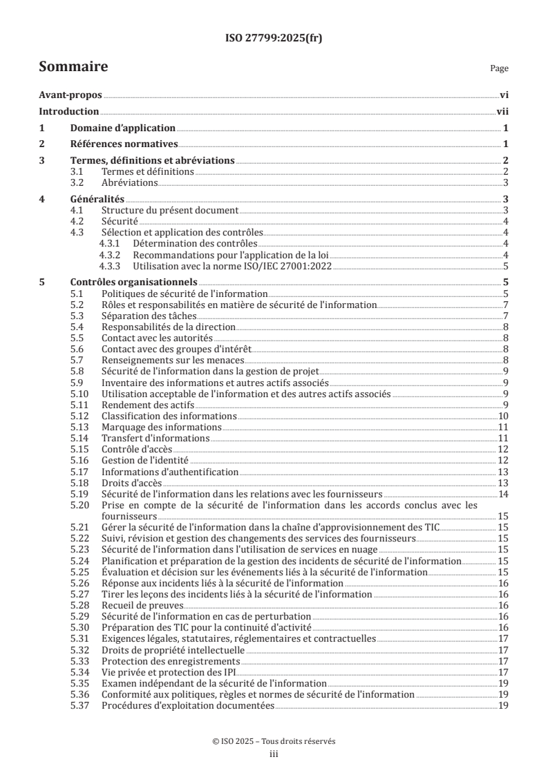 ISO 27799:2025 - Informatique de santé — Contrôles de sécurité de l'information dans le domaine de la santé basés sur l'ISO/IEC 27002 Released:18. 12. 2025