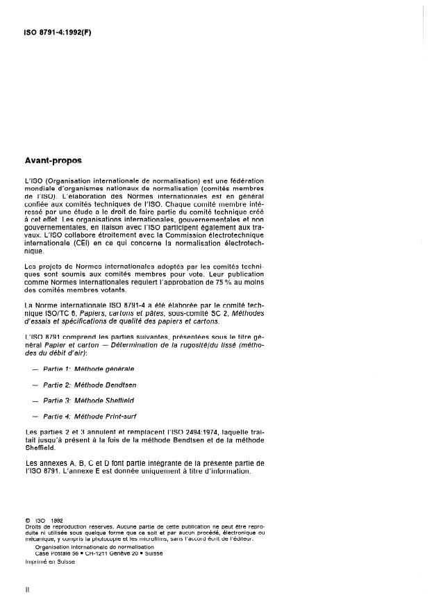 Should be read in conjunction with ISO 8791-1. Applicable to all printing papers and boards with which it is possible to form a substantially airtight seal against the guard lands of the measuring head. Annex A gives a method of calculation of roughness, Annex B specifies maintenance of the roughness testers, Annex D its calibration against ISO reference standards.