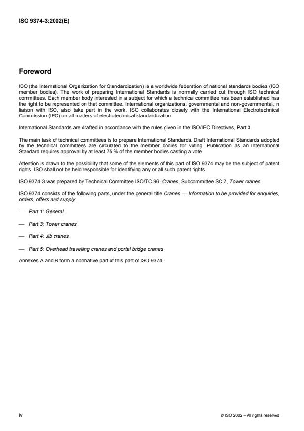 ISO 9374-3:2002 - Cranes -- Information to be provided for enquiries, orders, offers and supply