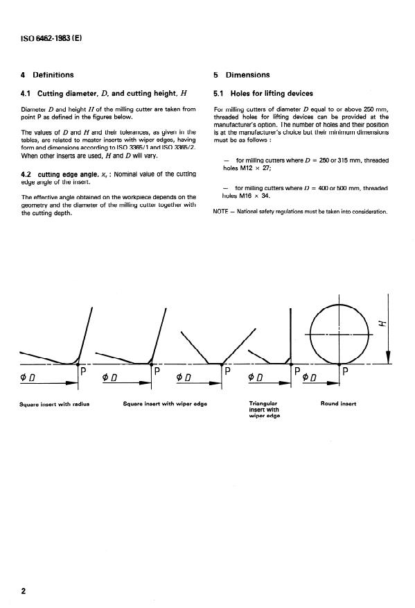 ISO 6462:1983 - Face milling cutters with indexable inserts -- Dimensions