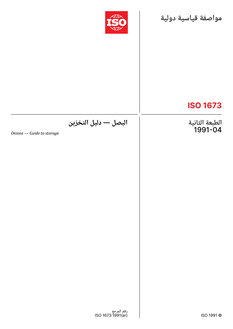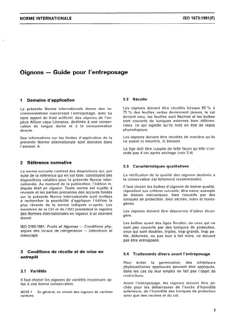 ISO 1673:1991 - Oignons — Guide pour l'entreposage/25/1991