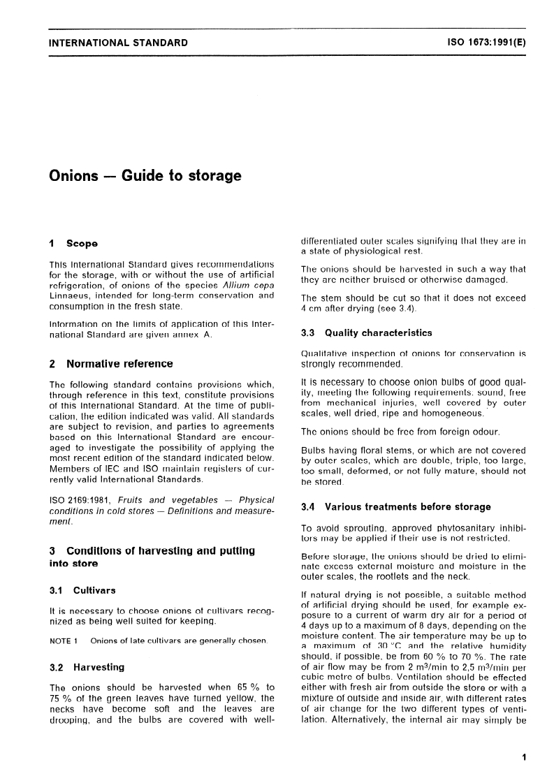 ISO 1673:1991 - Onions — Guide to storage/25/1991
