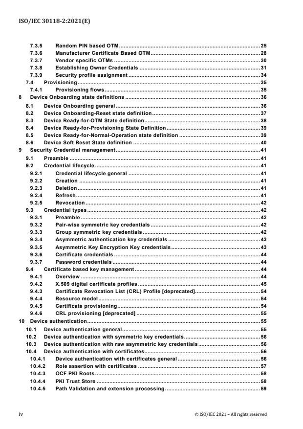 Keywords: ISO/IEC 30118-2, OCF Security Specification, IoT security, device onboarding, access control, credential management, DTLS, X.509, PKI.