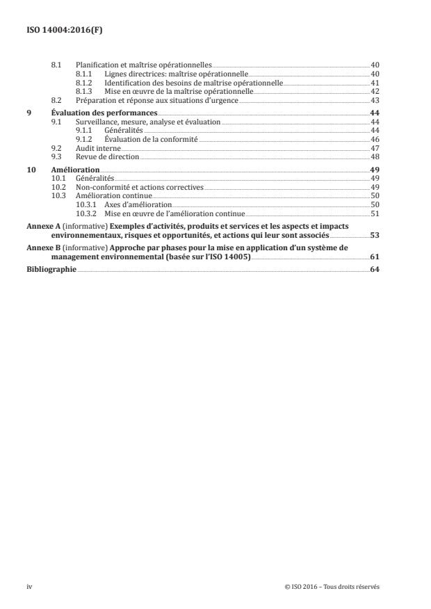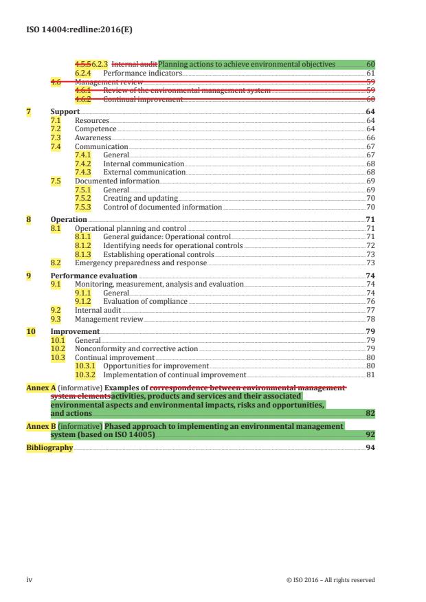 - Improvement: nonconformity and corrective action, and continual improvement of environmental performance.