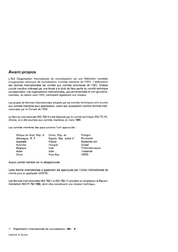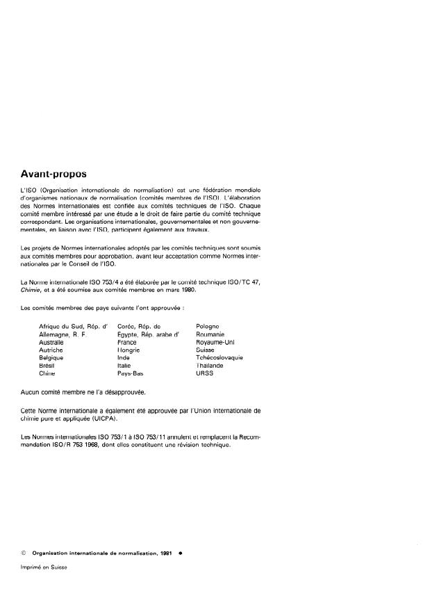 La Norme internationale ISO 753/4 a été élaborée par le comité technique ISO/TC 47,
