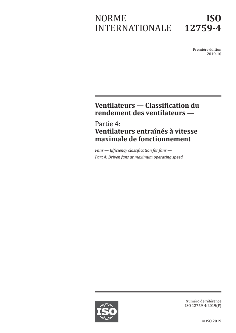 ISO 12759-4:2019 - Ventilateurs -- Classification du rendement des ventilateurs