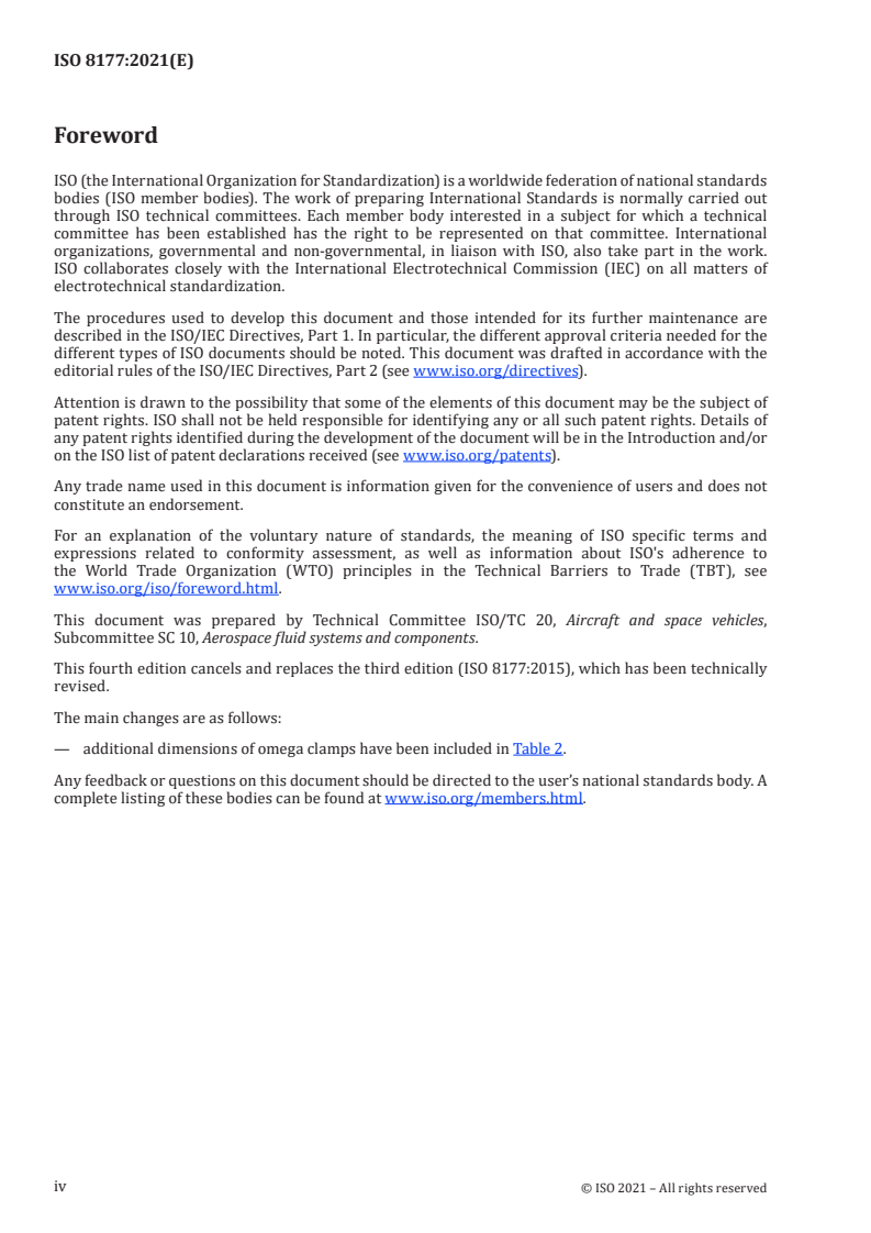 ISO 8177:2021 - Aerospace — Omega clamps (saddle clamps) for fluid systems — Dimensions Released:12/8/2021