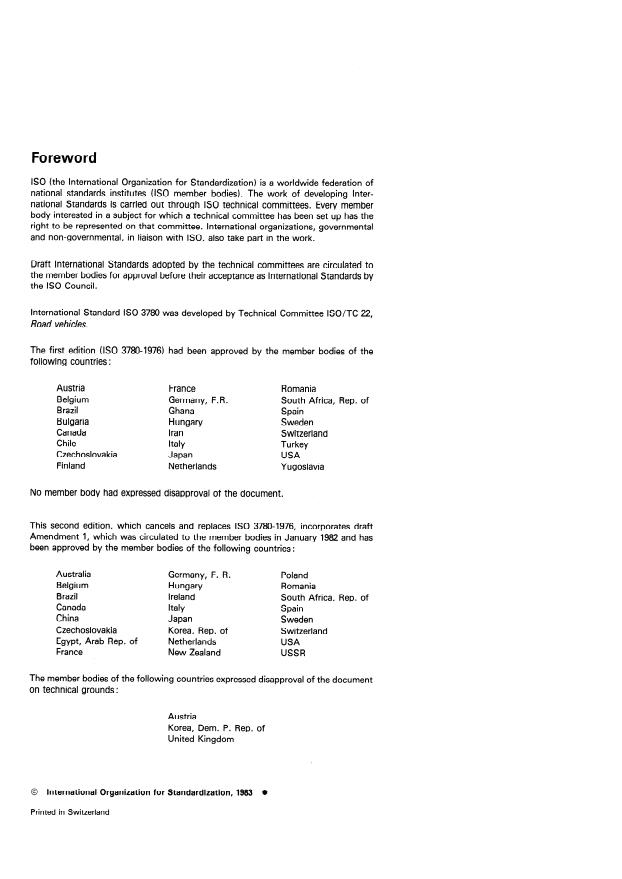 International Standard IS0 3780 was developed by Technical Committee ISO/TC 22,