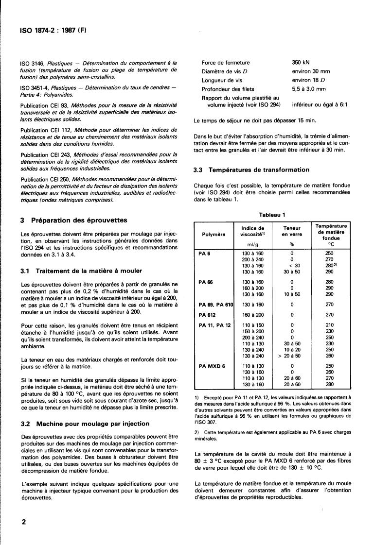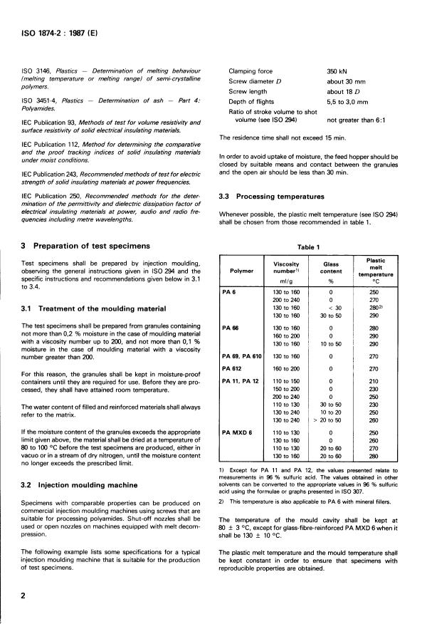 ISO 1874-2:1987 - Plastics — Polyamide (PA) moulding and extrusion materials — Part 2: Preparation of test specimens and determination of properties Released:12/10/1987