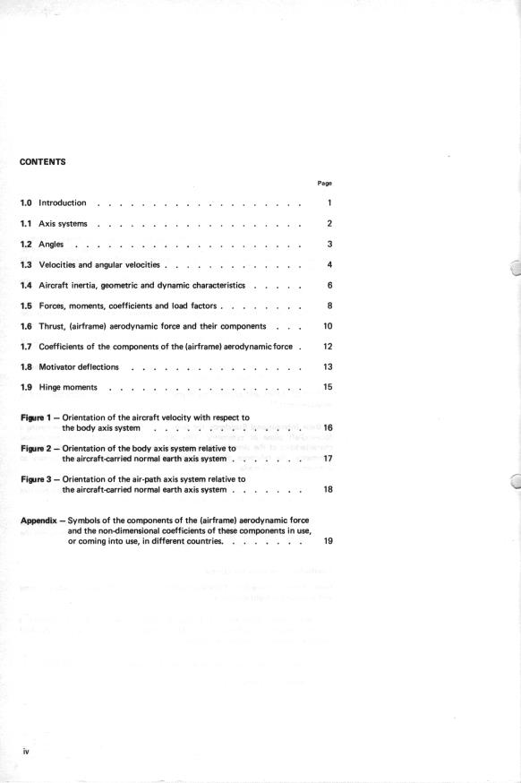 IS0 2764, Terms and symbols for flight dynamics - Part IV : Parameters used in