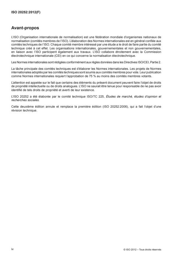 ISO 20252:2012 - Études de marché, études sociales et d'opinion -- Vocabulaire et exigences de service
