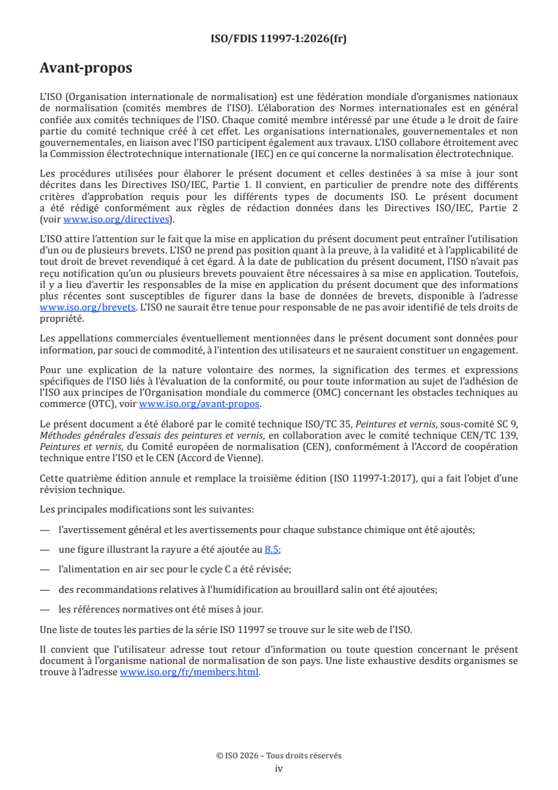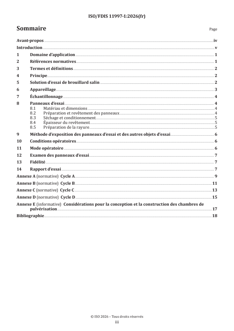 ISO/FDIS 11997-1 - Peintures et vernis — Détermination de la résistance aux conditions de corrosion cyclique — Partie 1: Brouillard salin/sécheresse/humidité Released:3. 02. 2026