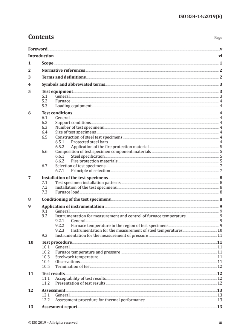 Keywords: ISO 834-14:2019, fire-resistance tests, applied fire protection, solid steel bar, thermal performance, integrity/stickability, ISO 834 series.