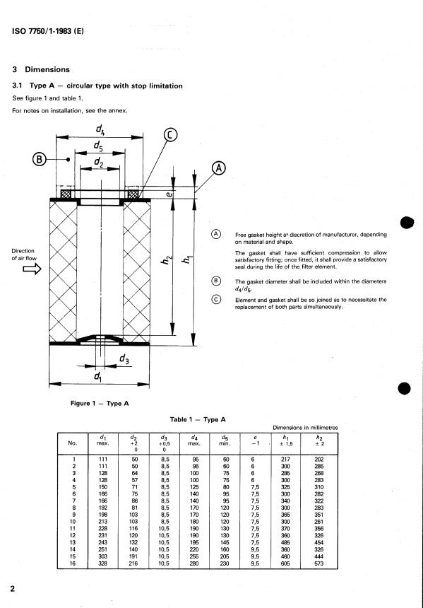 This part of IS0 7750 specifies the essential dimensional characteristics necessary for interchangeability of filter elements for air filters