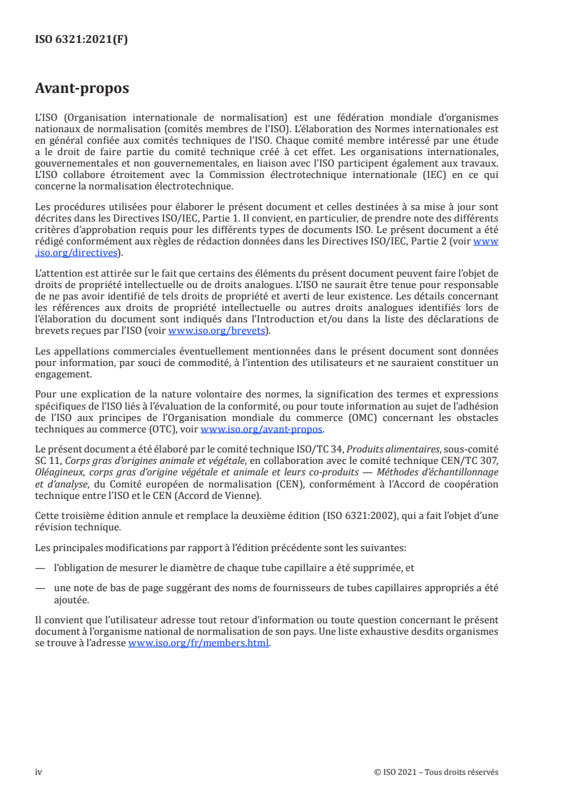 ISO 6321:2021 - Corps gras d'origines animale et végétale -- Détermination du point de fusion en tube capillaire ouvert -- Point de glissement