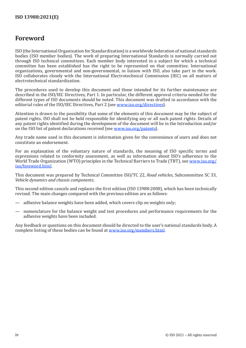 Keywords: ISO 13988:2021, clip balance weight, adhesive balance weight, rim flange, retention test, passenger car wheels, light alloy wheels, steel wheels, test procedures, performance requirements.
