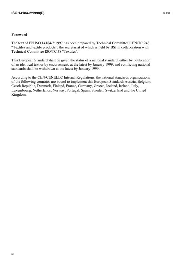 International Standard ISO 14184-2 was prepared by the European