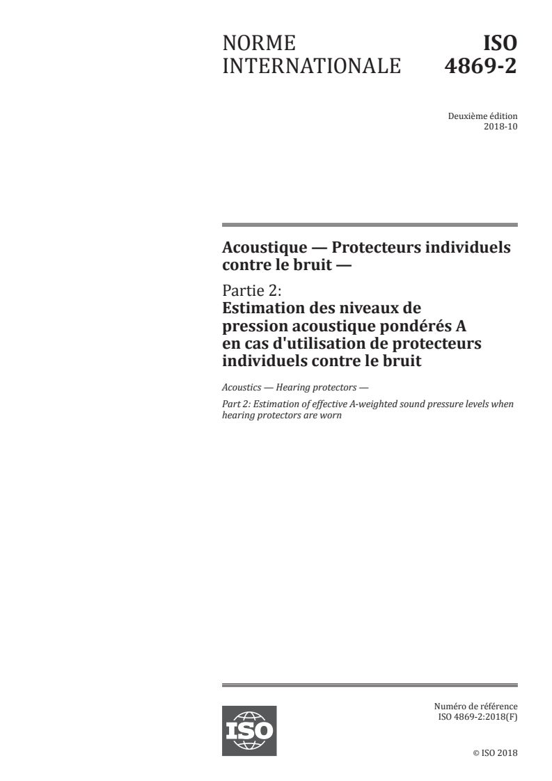 ISO 4869-2:2018 - Acoustique -- Protecteurs individuels contre le bruit