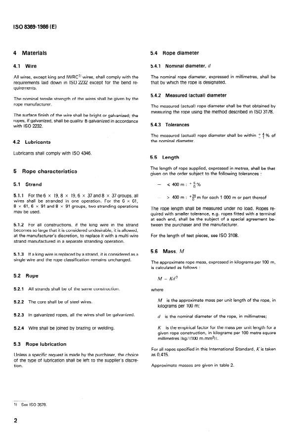 NOTE - Steel wire ropes having a nominal diameter less than or equal