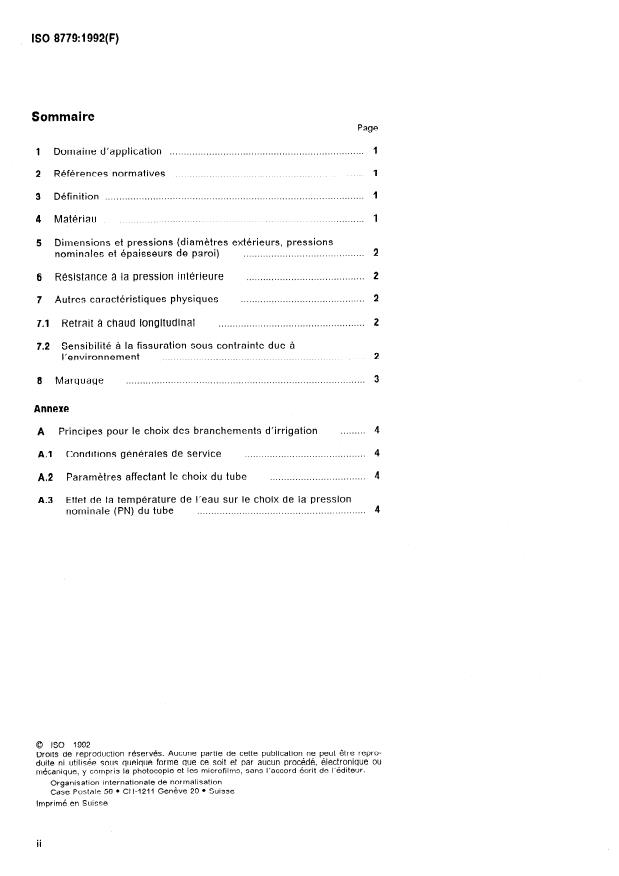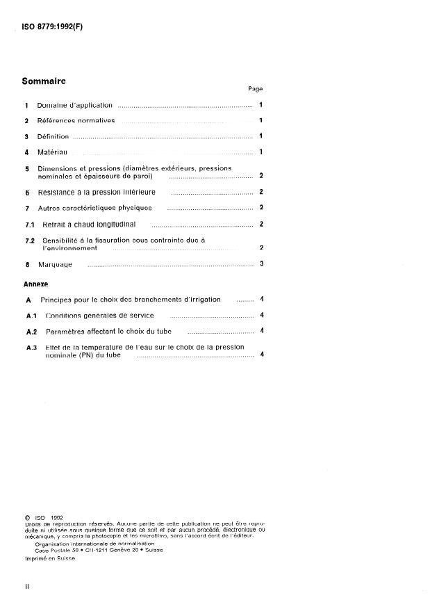 ISO 8779:1992 - Tubes en polyéthylene (PE) pour branchements d'irrigation -- Spécifications