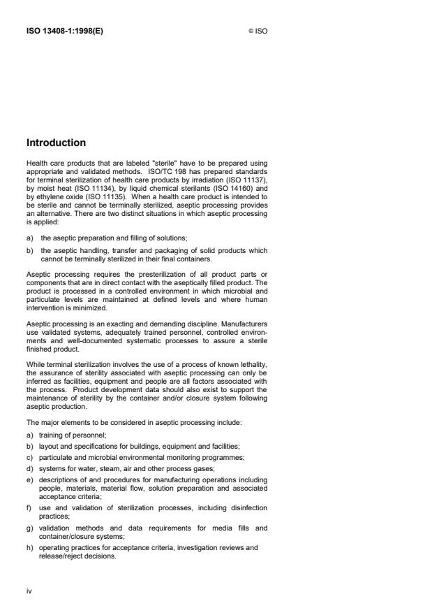 ISO 13408-1:1998 is a standard published by the International Organization for Standardization (ISO). Its full title is "Aseptic processing of health care products — Part 1: General requirements". This standard covers: Aseptic processing of health care products — Part 1: General requirements