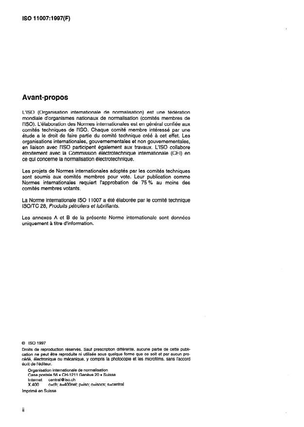 ISO 11007:1997 is a standard published by the International Organization for Standardization (ISO). Its full title is "Petroleum products and lubricants — Determination of rust-prevention characteristics of lubricating greases". This standard covers: This International Standard specifies a method for the determination of the rust-prevention characteristics of lubricating grease in the presence of an aqueous test fluid.