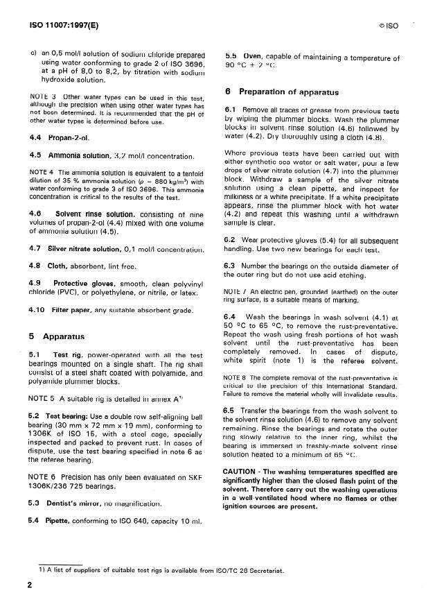 6.4 Laver les roulements au solvant de nettoyage (4.1) entre 50 “C et 65 “C pour enlever le