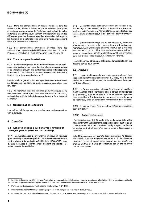 ISO 5446:1980 - Ferro-manganese -- Spécifications et conditions de livraison