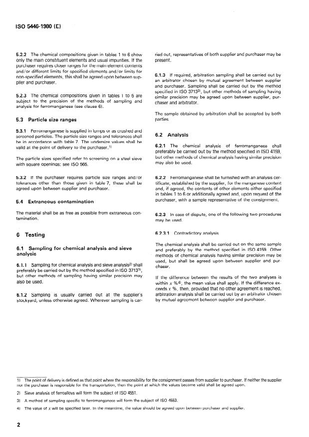 ISO 5446:1980 - Ferromanganese -- Specification and conditions of delivery