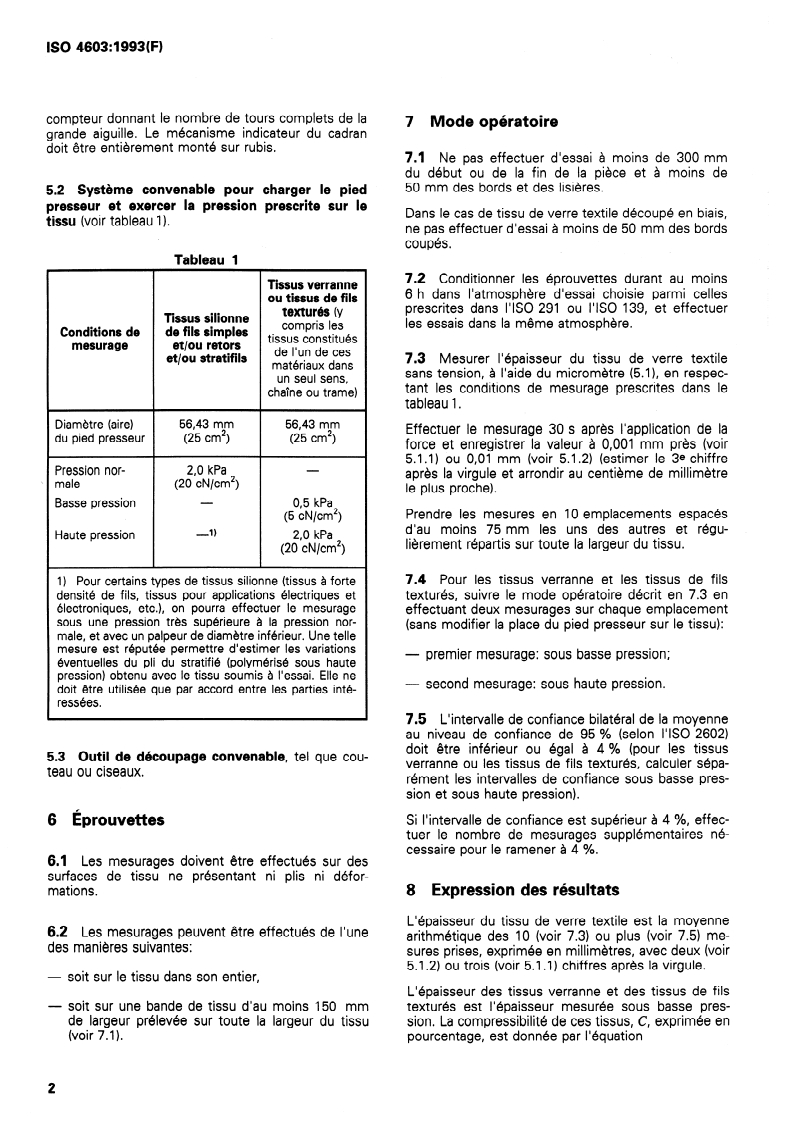 La methode est applicable aux tissus réalises avec une pression prescrite et exprimée en millimètres.