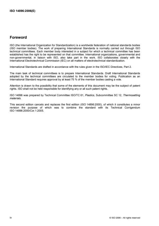 ISO 14896 was prepared by Technical Committee ISO/TC 61, Plastics, Subcommittee SC 12, Thermosetting