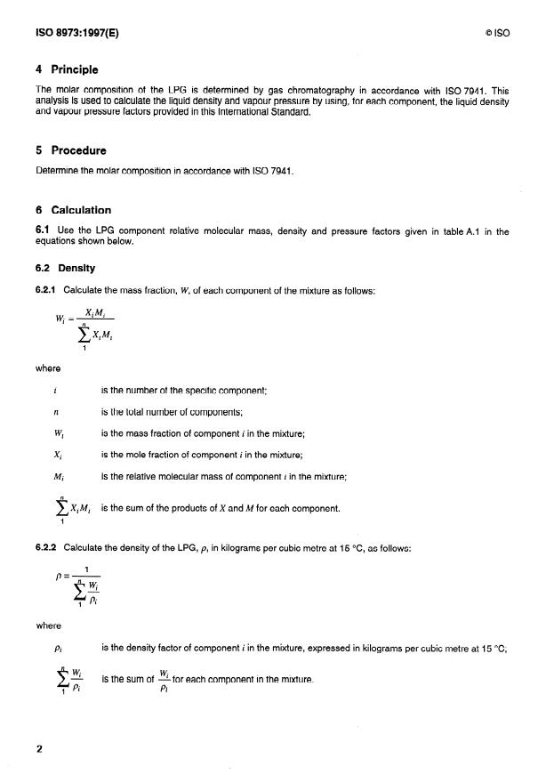 ISO 8973:1997 is a standard published by the International Organization for Standardization (ISO). Its full title is "Liquefied petroleum gases — Calculation method for density and vapour pressure". This standard covers: Liquefied petroleum gases — Calculation method for density and vapour pressure