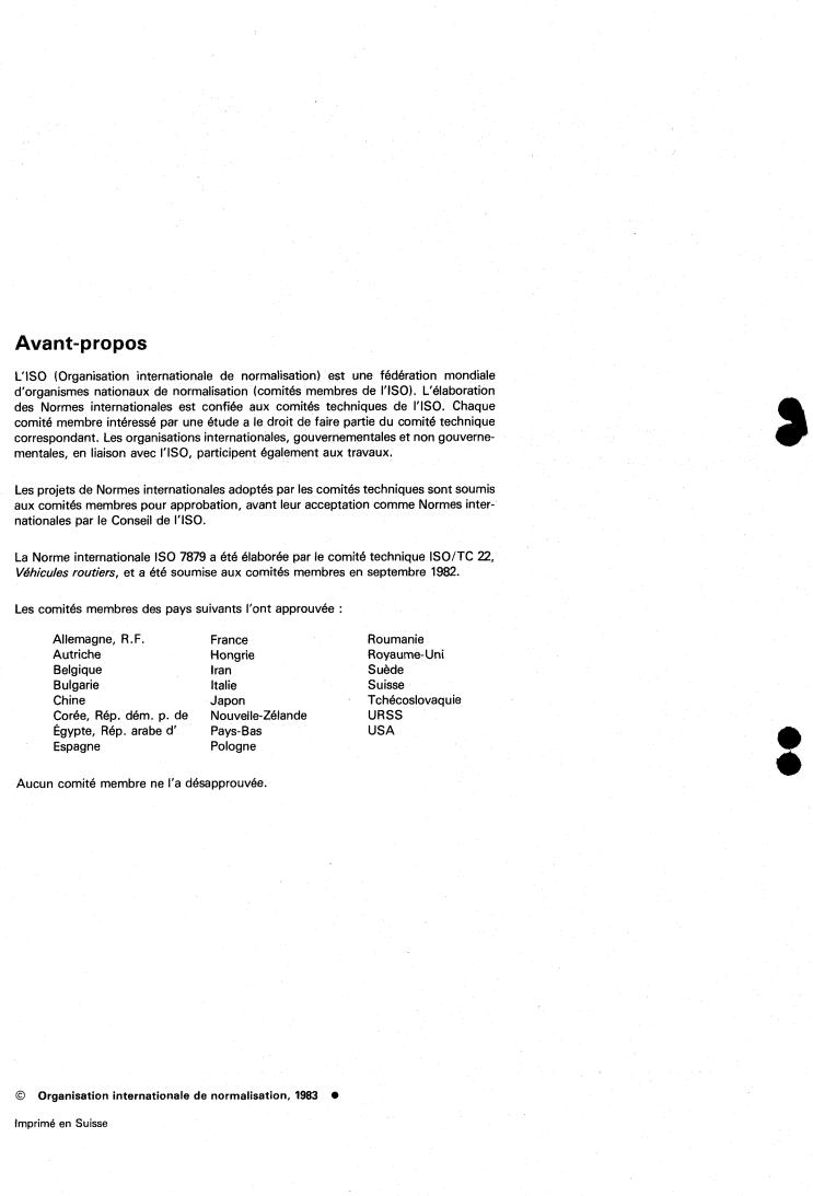La Norme internationale IS0 7879 a été élaborée par le comité technique ISO/TC 22,