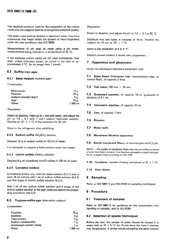 ISO 6461-2:1986 - Water quality -- Detection and enumeration of the spores of sulfite-reducing anaerobes (clostridia)