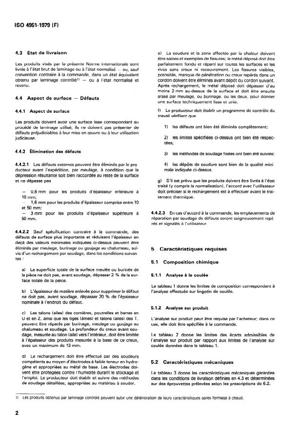 1) Pour les produits livrés à l’état brut de laminage, les valeurs d’allongement sont diminuées de deux points.