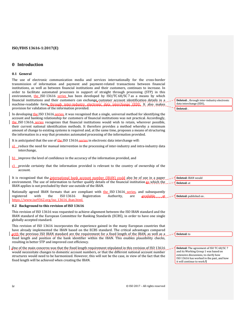 with the previous ISO IBAN standard are the requirement for a fixed length of the IBAN, as well as a Deleted: to