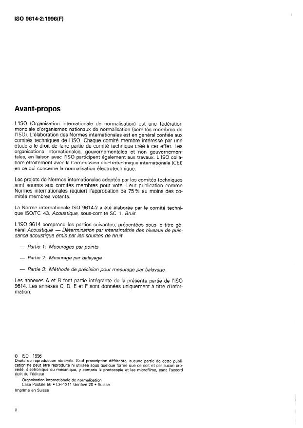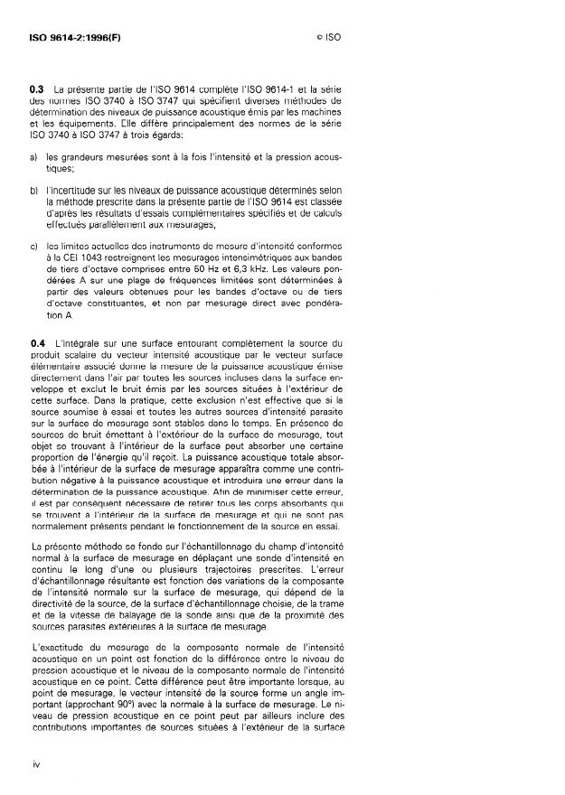 ISO 9614-2:1996 - Acoustique -- Détermination par intensimétrie des niveaux de puissance acoustique émis par les sources de bruit