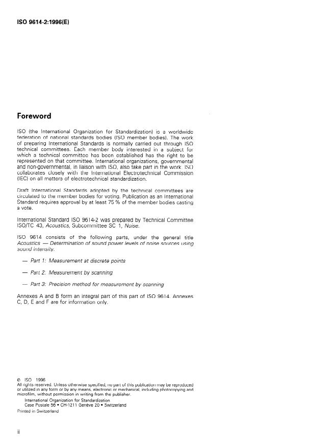 ISO 9614-2:1996 - Acoustics -- Determination of sound power levels of noise sources using sound intensity