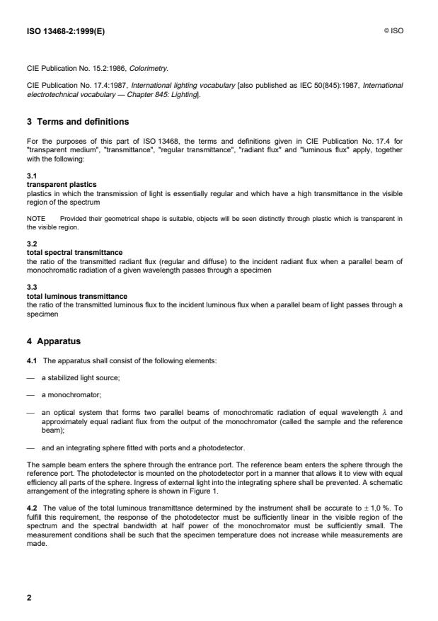 NOTE 1 Total luminous transmittance can also be determined by a single-beam instrument as in part 1 of this International