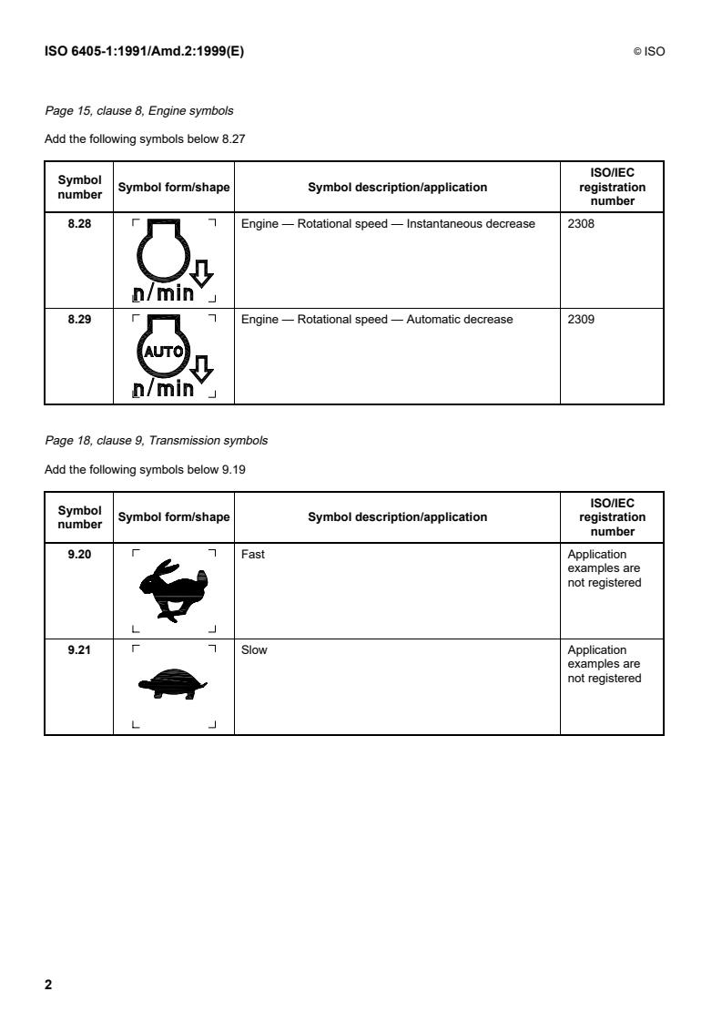 ISO 6405-1:1991/Amd 2:1999 - Earth-moving machinery — Symbols for operator controls and other displays — Part 1: Common symbols — Amendment 2: Additional symbols Released:5/6/1999