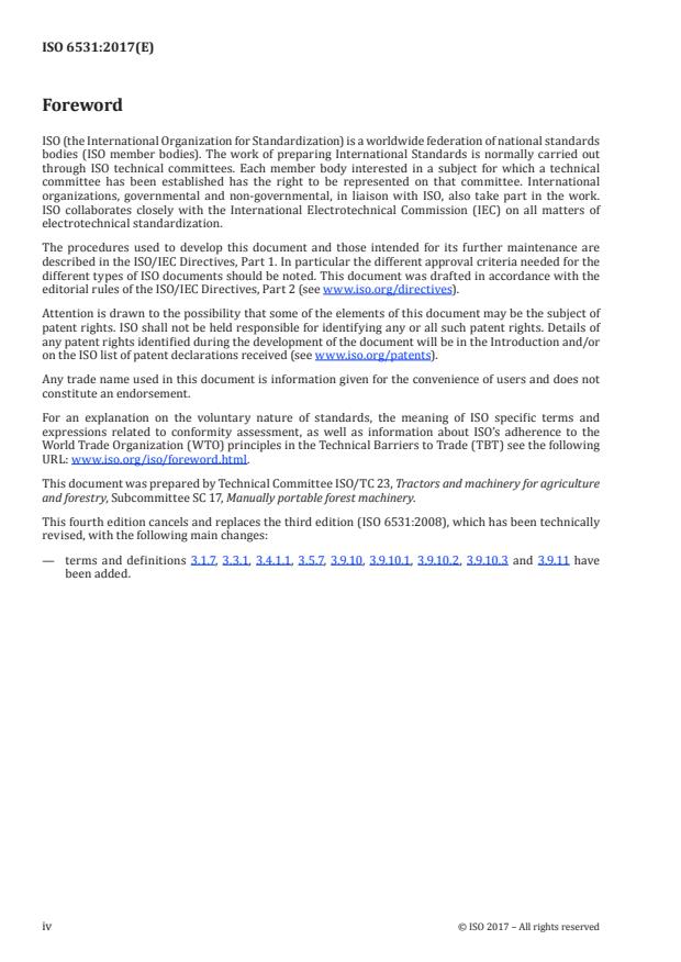 The fourth edition of ISO 6531, released in 2017, updates and expands the definitions provided in earlier versions to improve clarity and address new technical developments in portable chain-saw machinery.