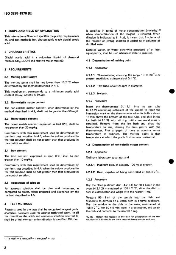 ISO 3298:1976 - Photographic grade glacial acetic acid -- Specification