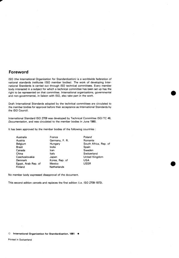 This second edition cancels and replaces the first edition (i.e. IS0 2709-1973).